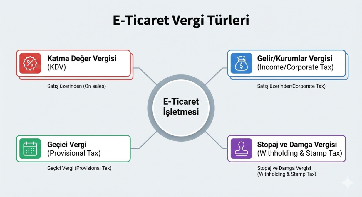 E-Ticaret ve Vergi Türleri E-ticarette vergilendirme, fiziksel ticaretten çok farklı değildir ancak işlem hacmi, fatura sayısı ve müşteri sayısı nedeniyle takibi daha zordur. İşte bilmeniz gereken temel vergi türleri: 1. Katma Değer Vergisi (KDV) Sattığınız ürün veya hizmet üzerinden aldığınız vergidir. Ürün kategorisine göre %1, %10 veya %20 olabilir. KDV, “emanet” bir vergidir; müşteriden alır, …